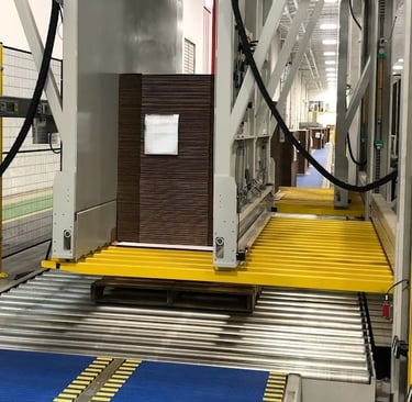 We provide all conveyors, angle stations, turntables, and centralizers to handle palletized or non-palletized goods